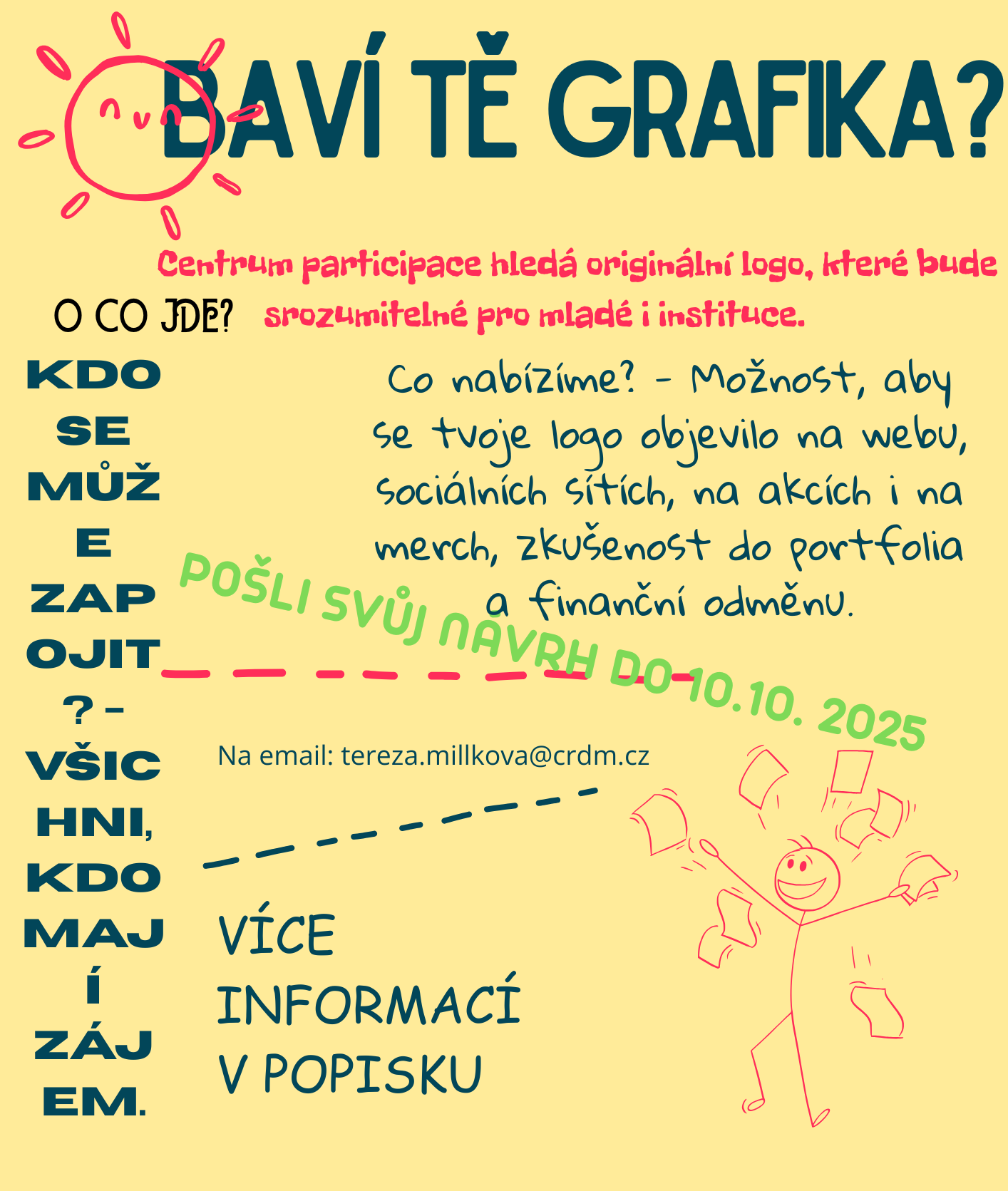 Baví tě grafika a láká tě téma participace mládeže? Chceš, aby právě tvůj návrh reprezentoval mladé lidi při jednáních s politiky i na akcích po celé republice? Centrum participace hledá své logo. A můžeš ho navrhnout právě ty!
